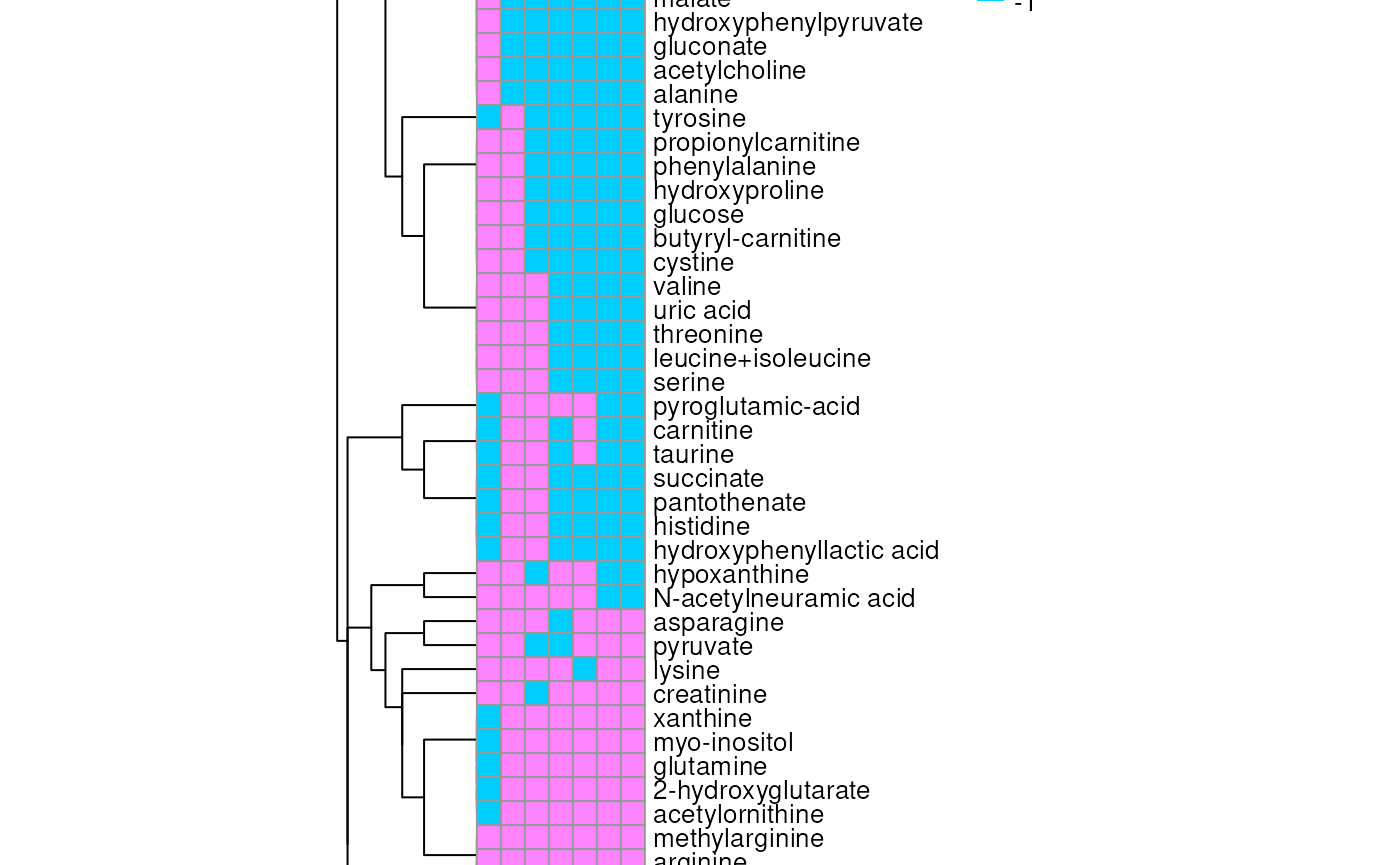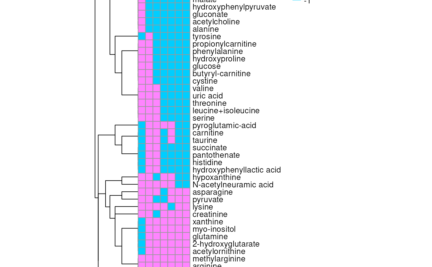 column_to_rownames("Metabolite")| HMDB | KEGG.ID | KEGGCompound | Pathway | |