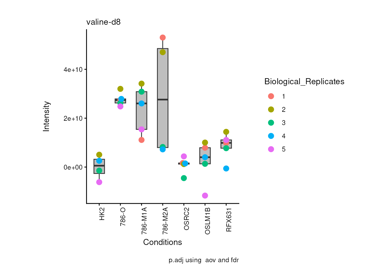 column_to_rownames("Code")| Conditions | Biological_Replicates | GrowthFactor | valine-d8 | hipppuric acid-d5 | 2-hydroxyglutarate | 2-ketoglutarate | 3-Dehydro-L-threonate | |