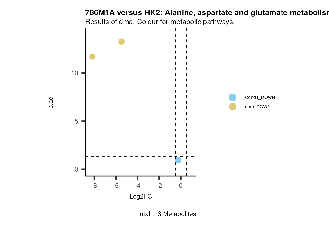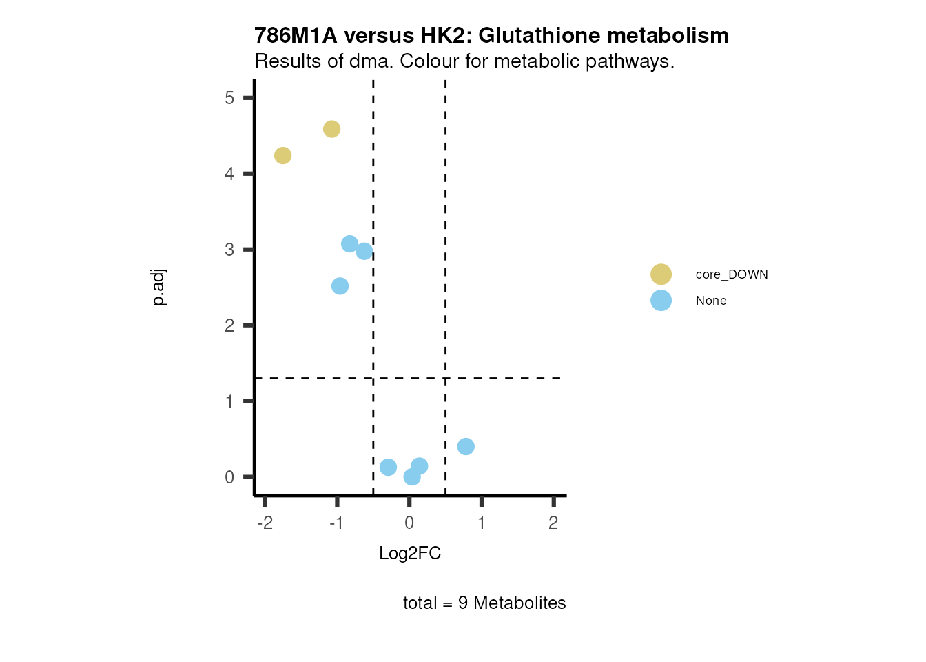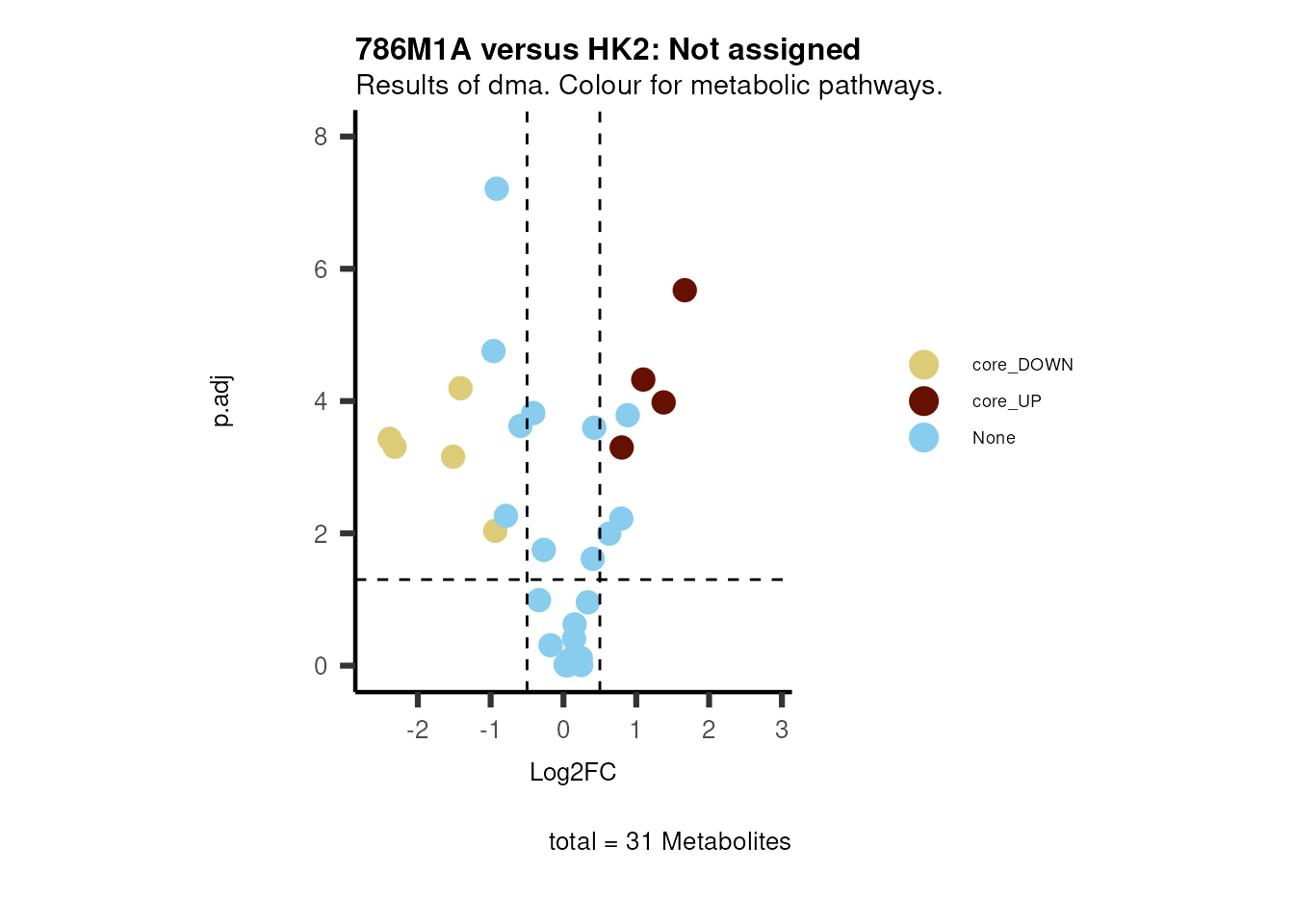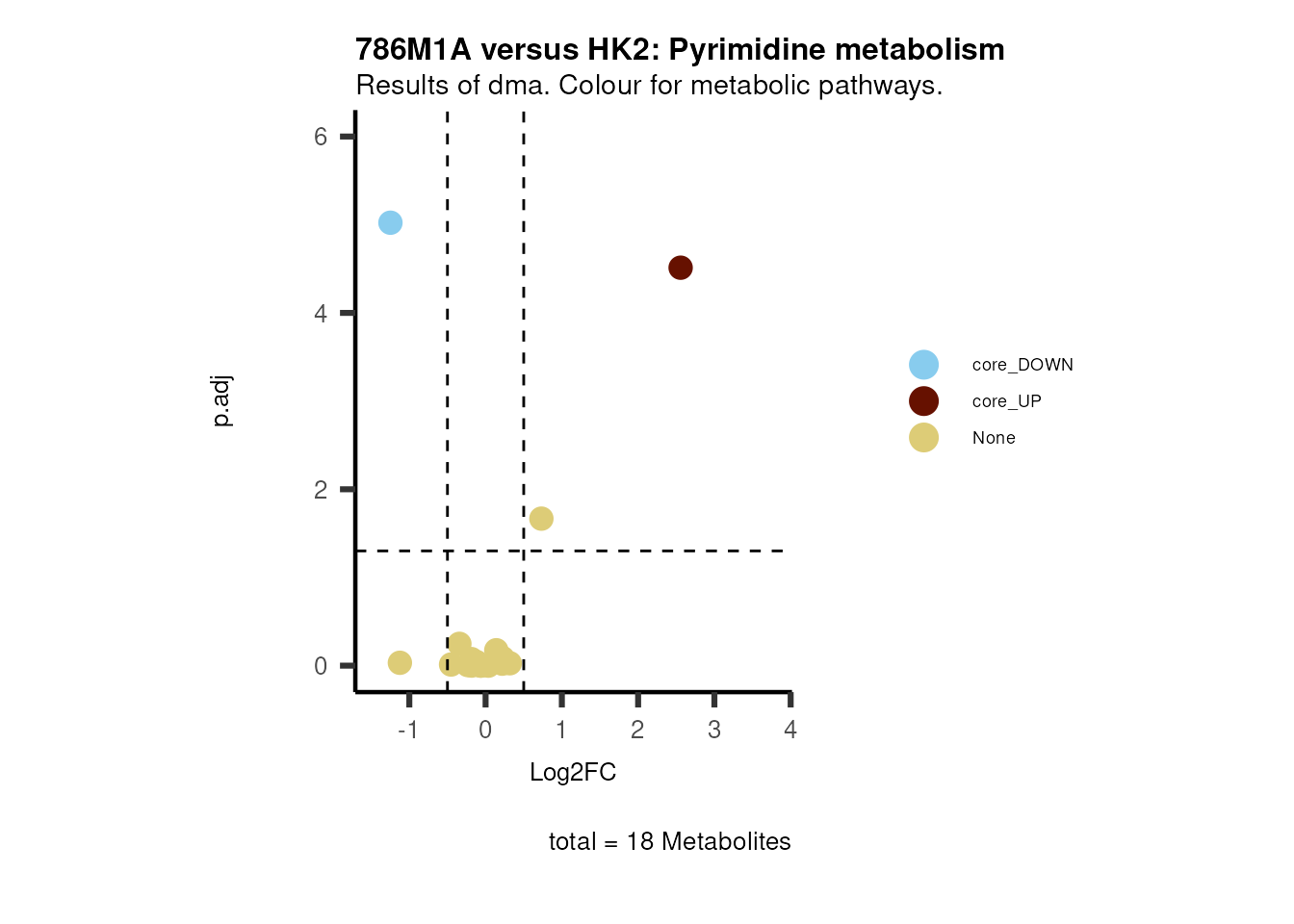 plot_name= "786M1A versus HK2 Results of dma. Colour for metabolic pathways.",