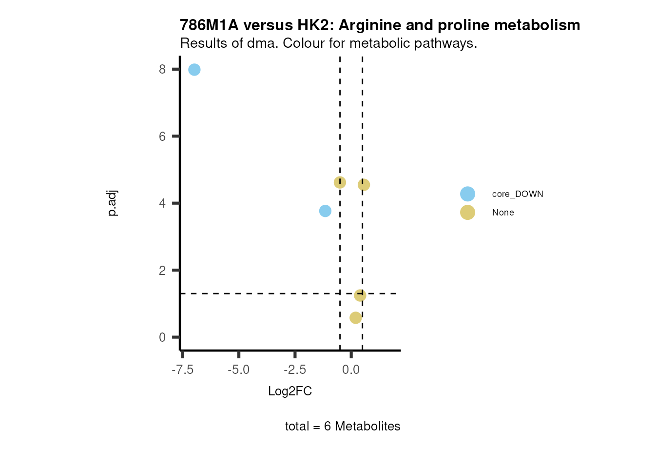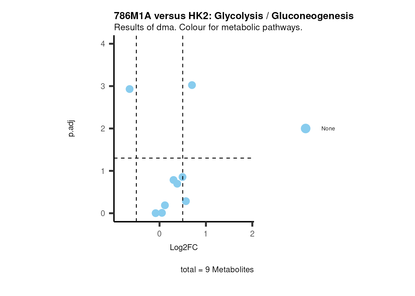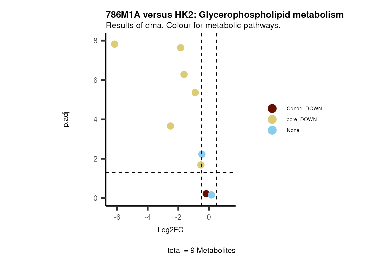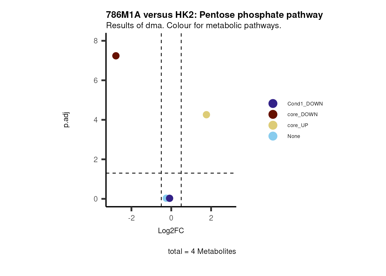 plot_name= "786M1A versus HK2 Results of dma. Colour for metabolic pathways.",