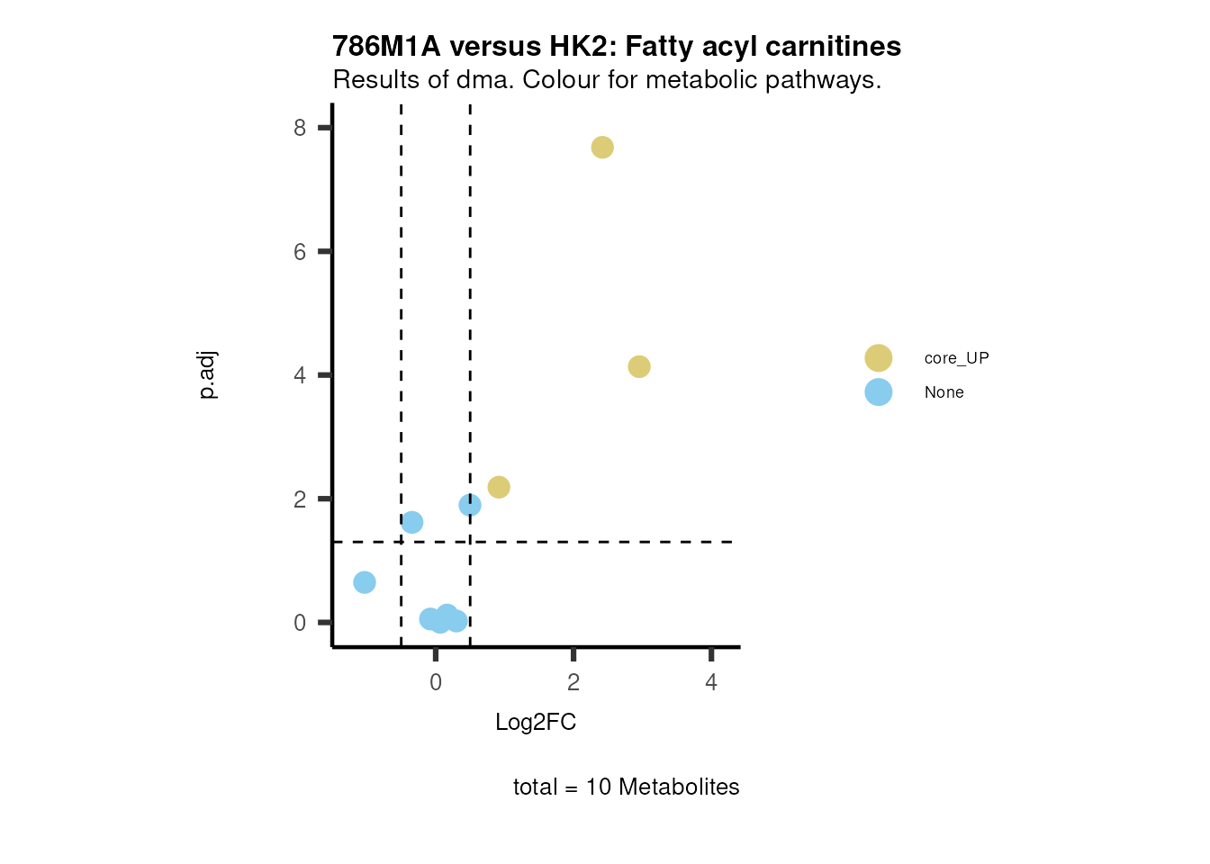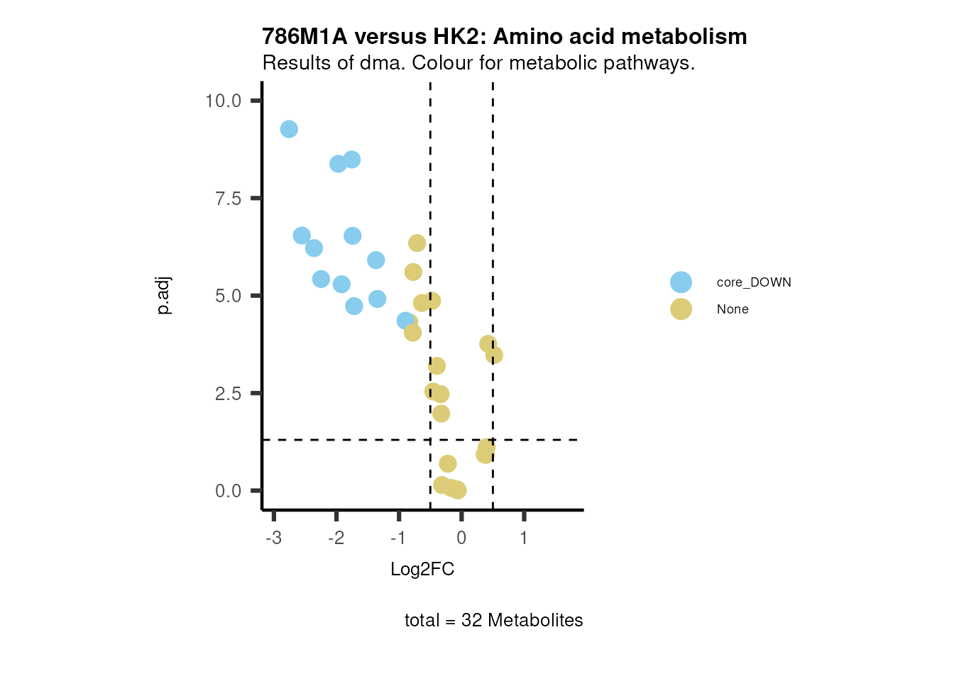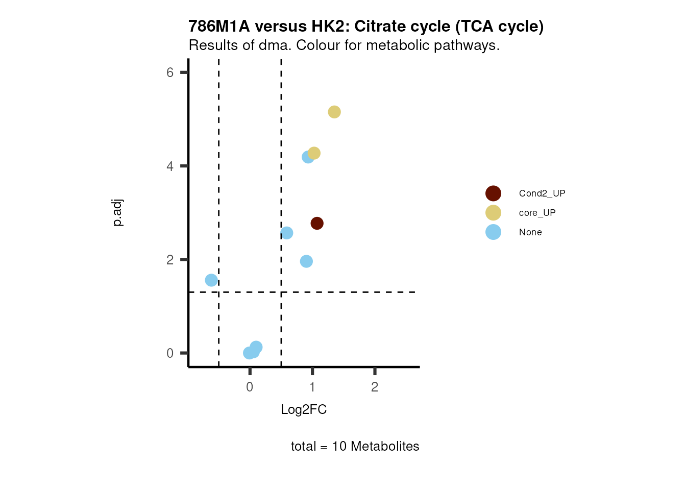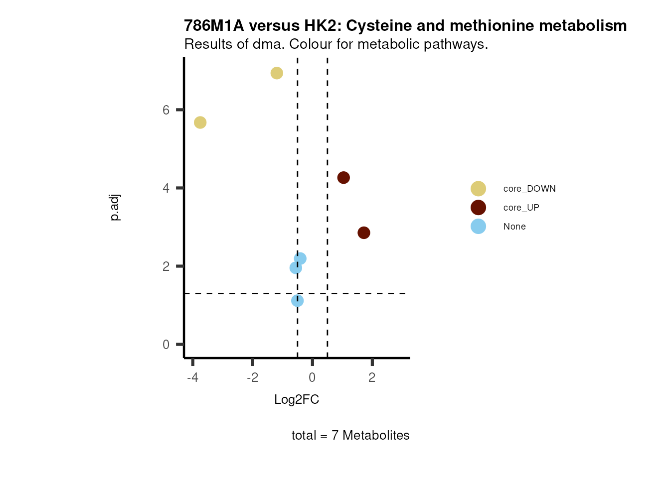 plot_name= "786M1A versus HK2 Results of dma. Colour for metabolic pathways.",