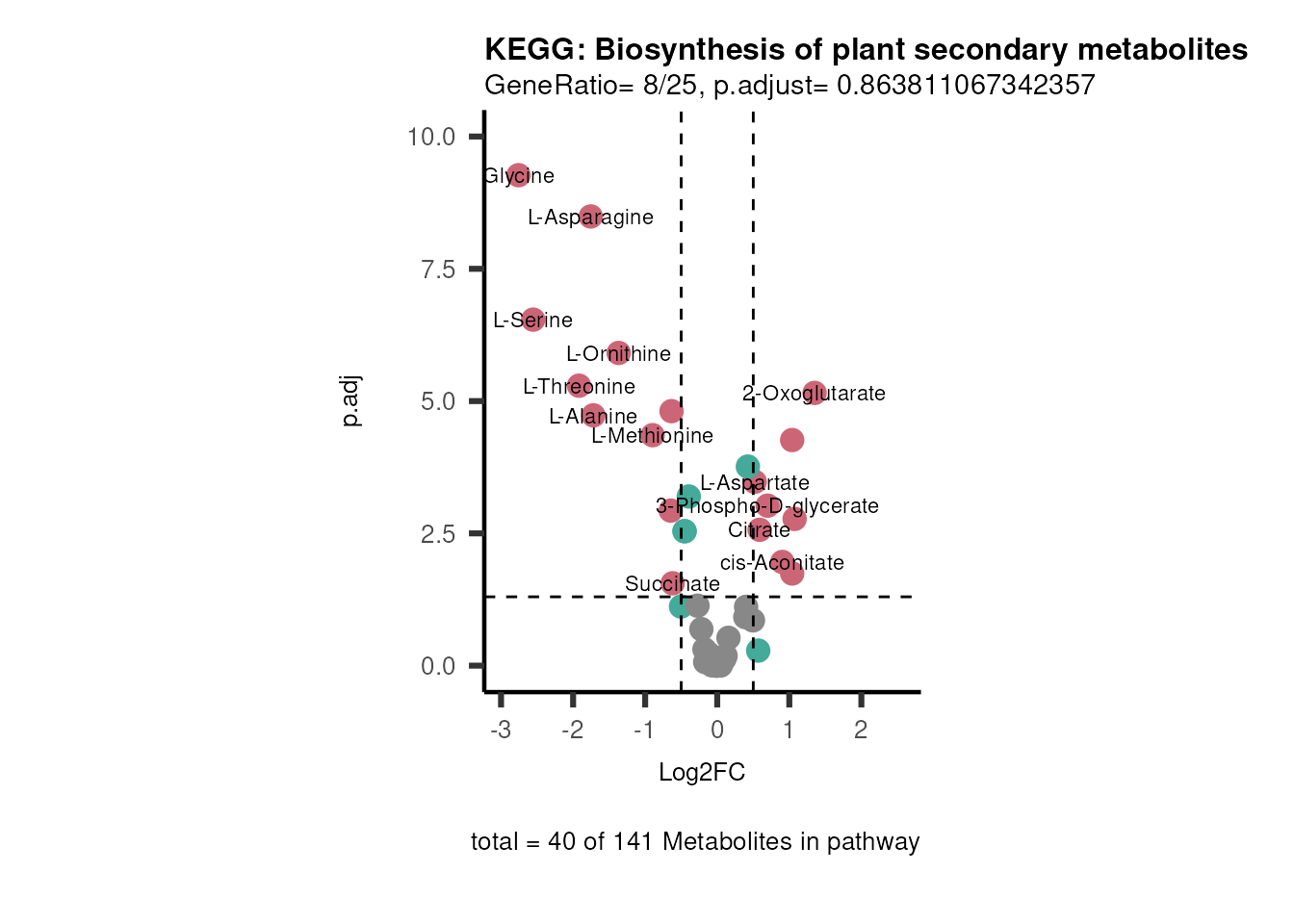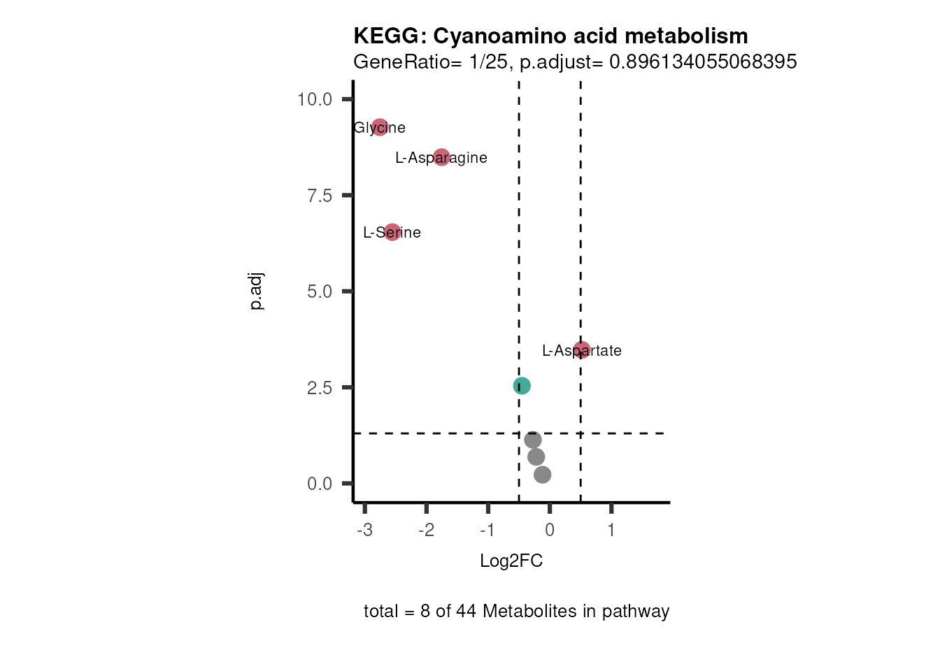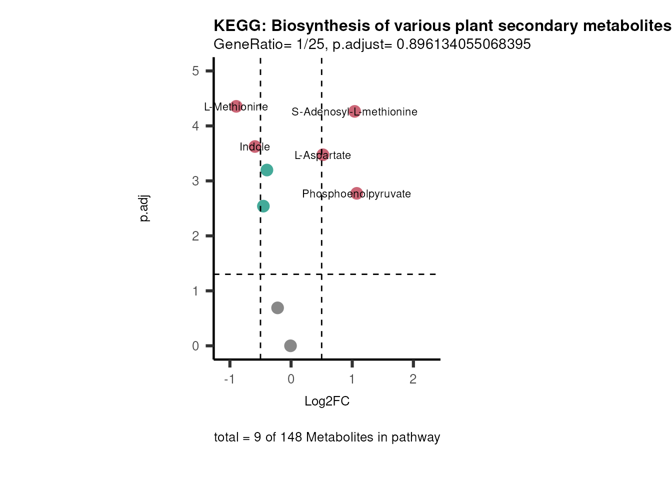 # Now we can generate a plot for each pathway and color for the metabolite clusters: