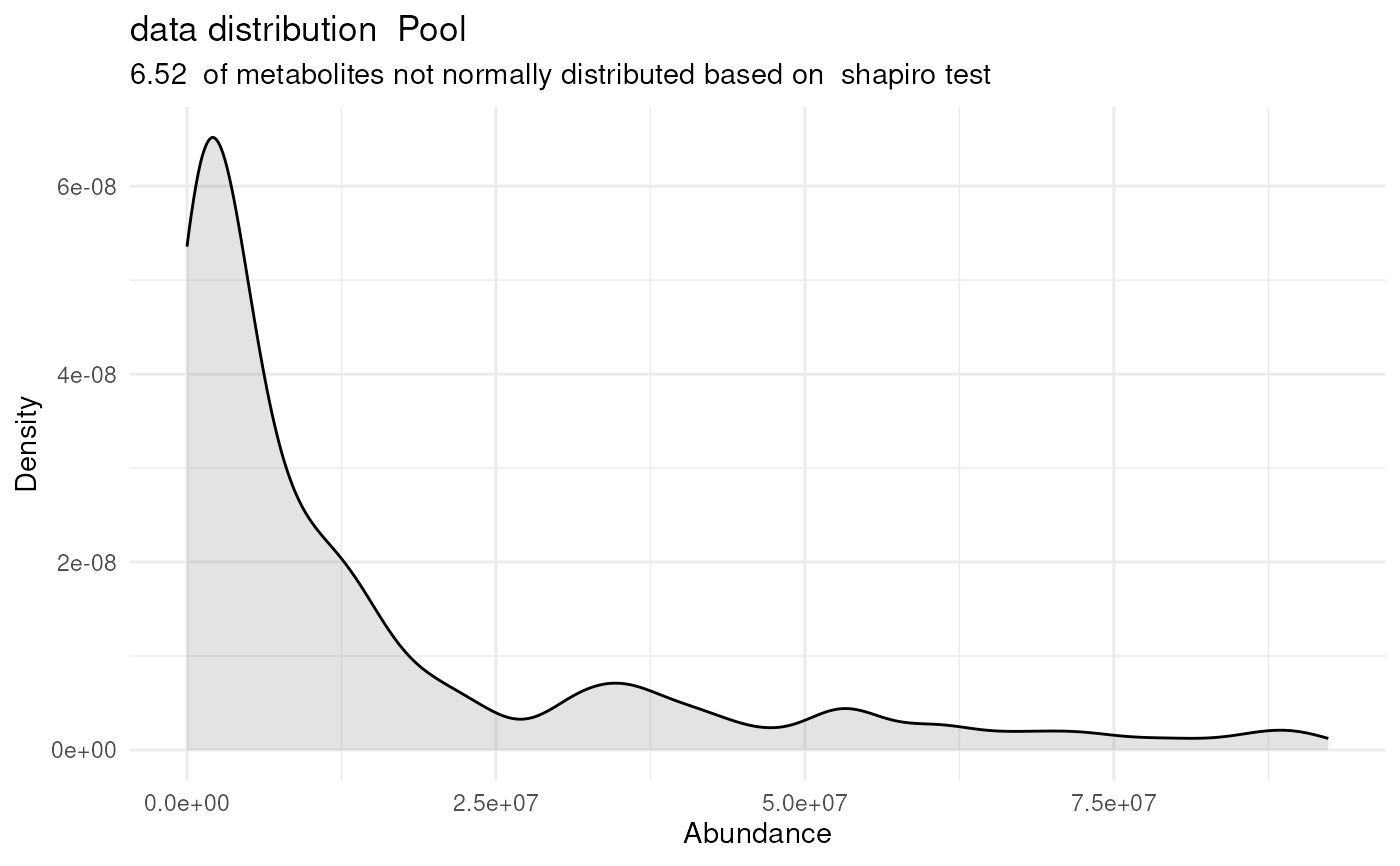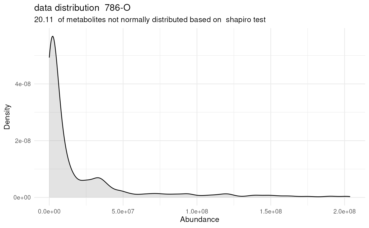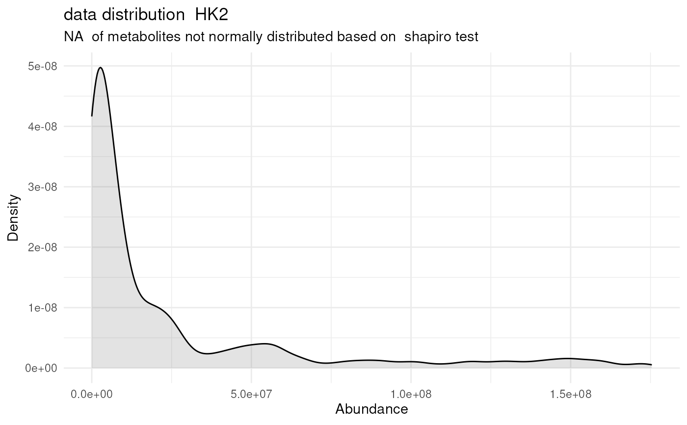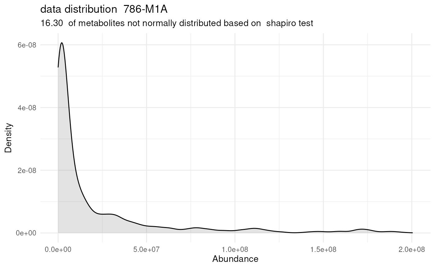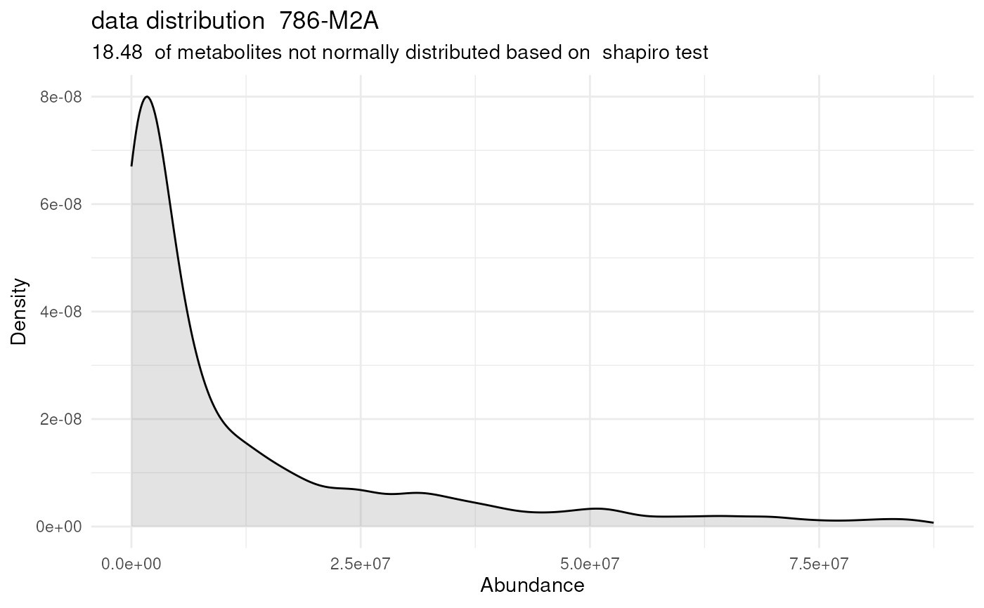 #> Warning: There are NA's / 0s in the data. This can impact the output of the SHapiro-Wilk test for all metabolites that include NAs / 0s.