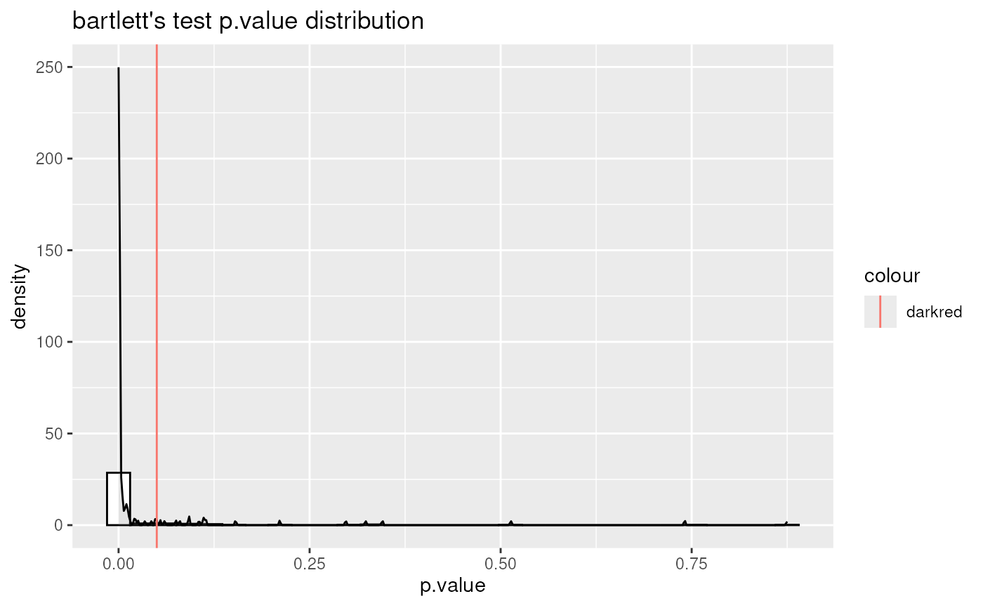 #> For 9.89% of metabolites the group variances are equal.