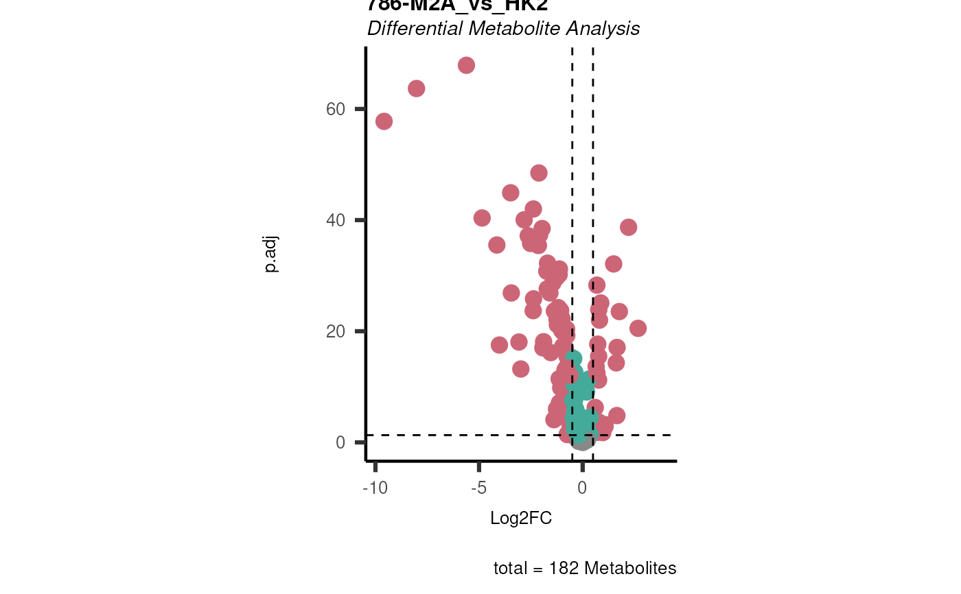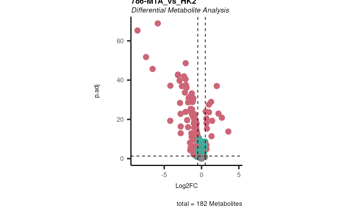 #> ).. Those metabolite(s) might return p.val = NA, p.adj.= NA, t.val = NA. The Log2FC = Inf, if all replicates are 0/NA.